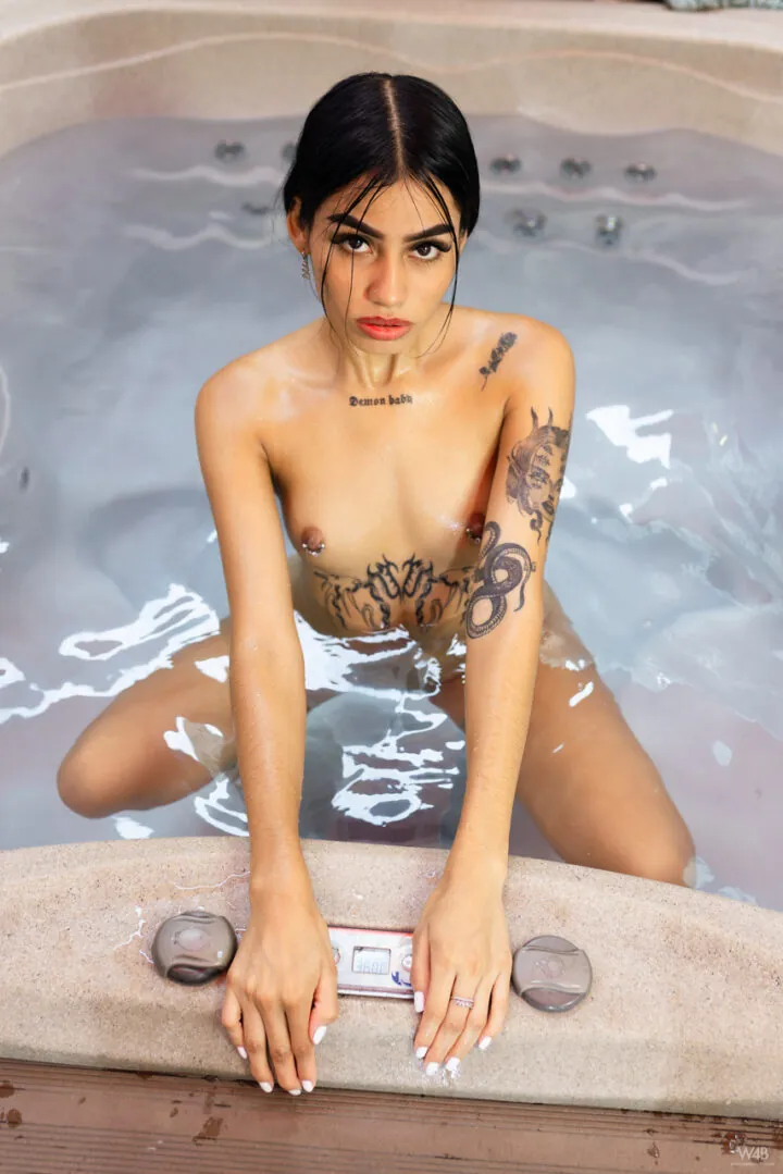 Ninfeta moreninha tatuada completamente nua